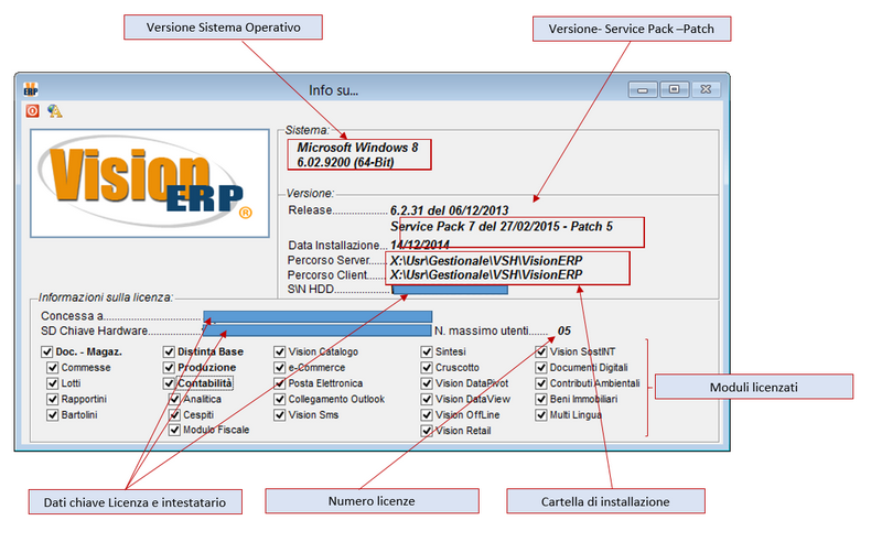 - in questa maschera trovate tutte le informazioni necesarie all'identificazione del software e molto altro come indicato in figura sotto.